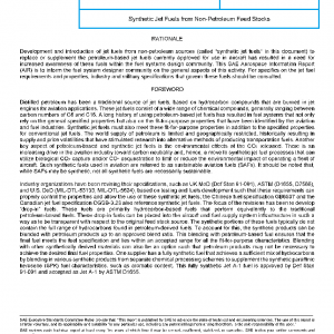 This SAE Aerospace Information Report (AIR) provides general information on the developing subject of synthetic jet fuels derived from non-petroleum feed stocks. It addresses synthetic jet fuel properties and other topics associated with their use and is intended as a guide to assist aviation fuel system designers in considering important information on fuel properties when designing aircraft fuel systems and components. The AIR is limited to “drop-in” fuels that meet the requirements of the respective fuel specifications and are compatible with typical aircraft and ground refueling systems. While some key properties are included in this AIR for discussion, the reader should utilize documents such as MIL-HDBK-510 or the ASTM International research reports for a more-detailed review of fuel properties. AIR7484 also gives more details on fuel properties, specifically as they relate to airframe fuel system design.