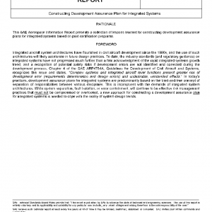 This SAE Aerospace Information Report (AIR) supplements ARP4754A by identifying the crucial elements to be considered when constructing the development assurance plans described in Chapter 3 (Development Planning) of ARP4754A for integrated systems. This AIR presents a collection of lessons learned from past certification programs involving integrated systems. This AIR is not guidance for system integration technologies.