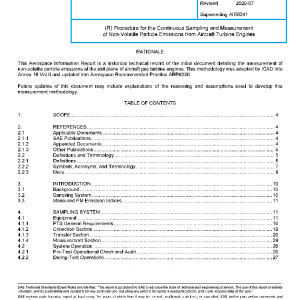 | PAGE | This Aerospace Information Report is a historical technical record of the initial document detailing the measurement of non-volatile particle emissions at the exit plane of aircraft gas turbine engines. This methodology was adopted by ICAO into Annex 16 Vol II and updated into Aerospace Recommended Practice ARP6320. |