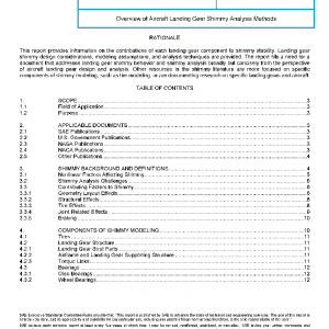 This SAE Aerospace Information Report (AIR) provides an overview of the tire properties, strut properties, damper properties, and other landing gear mechanical properties that contribute to shimmy stability and are required for shimmy analysis. A variety of analysis techniques and assumptions are presented.