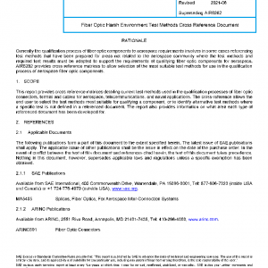 This report provides cross reference matrices detailing current test methods used in the qualification processes of fiber optic connectors, termini and cables for aerospace, telecommunications, and naval applications. The cross-reference allows the end user to select the test methods most suitable for qualifying a component, or to identify alternative test methods where a specific test is not defined in a referenced document. The report also provides information on what area each type of referenced document has been developed for.