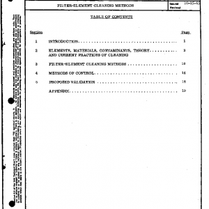 This Aerospace Information Report provides technical information to assist the development of specific cleaning methods for filter elements. Consideration is limited to filter elements which are designated as “cleanable” (not “disposable”), but which cannot be cleaned by simple and obvious procedures. Cleaning methods developed according to this report should be evaluated by the methods of ARP 725 and ARP 849.