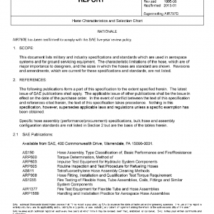 This document lists military and industry specifications and standards which are used in aerospace systems and for ground servicing equipment. The characteristic limitations of the hose, which are of major importance to designers, and the sizes in which the hoses are standard are shown. Revisions and amendments, which are current for these specifications and standards, are not listed.