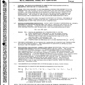 DATA ARE RELATED TO THE DIMENSIONAL CHANGES WITH RESPECT TO ROOM TEMPERATURE AND PROVIDE ACCURACY SUFFICIENT FOR USE WITH MOST AEROSPACE SYSTEMS. TWO BASIC METHODS OF SOLUTION ARE PRESENTED WITH EXAMPLES FOR STEADY STATE CONDITIONS INVOLVING UNIFORM AND NON-UNIFORM TEMPERATURE DISTRIBUTIONS. THE ANSWERS TO THE EXAMPLE PROBLEMS ARE CARRIED TO THE FIFTH PLACE FOR A COMPARISON OF THE RESULTS BETWEEN METHODS I AND II.