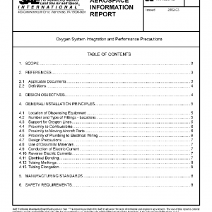 Oxygen system integration and performance precautions are in particularly dependent on applicable sections of airworthiness requirements per FAR/JAR 25. In this document information will be provided on common principles and good practices regarding design criteria, installation, manufacturing, safety aspects and system handling during maintenance and inspection.
