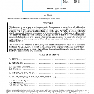This SAE Aerospace Information Report (AIR) provides an orientation regarding the general technology of chemical oxygen generators to aircraft engineers for assistance in determining whether chemical oxygen generators are an appropriate oxygen supply source for hypoxia protection in a given application and as an aid in specifying such generators. Information regarding the details of design and manufacture of chemical oxygen generators is generally beyond the scope of this document.