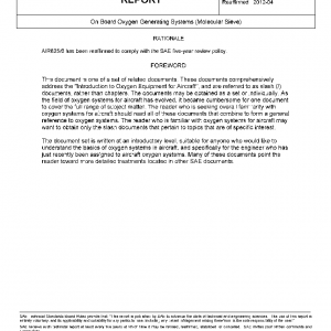 The possible applicability and benefit of incorporation of OBOGS-Molecular Sieve into non-military aircraft is being considered by the representatives of Civil Aviation. The intended aim of AIR825/6 is to provide a fundamental description of the function of existing OBOGS-Molecular-Sieve systems with a related reference to the type of oxygen standards which would merit a review.