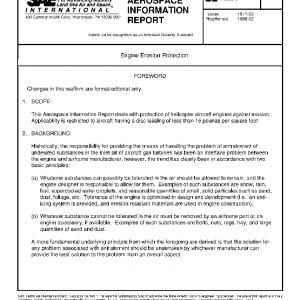 This Aerospace Information Report deals with protection of helicopter aircraft engines against erosion. Applicability is restricted to aircraft having a disc loading of less than 15 pounds per square foot.