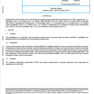 This specification, in conjunction with the general requirements for peening media covered in AMS2431, establishes the requirements for the procurement of ceria-zirconia ceramic shot.