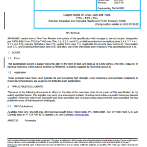 This specification covers a copper-nickel-tin alloy in the form of bars and rods up to 8.500 inches (216 mm), inclusive, in nominal thickness. When tube is ordered to AMS4596, it shall be supplied to AMS4598 (see 8.8).