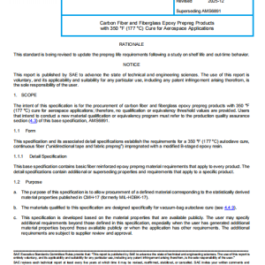 The intent of this specification is for the procurement of carbon fiber and fiberglass epoxy prepreg products with 350 °F (177 °C) cure for aerospace applications; therefore, no qualification or equivalency threshold values are provided. Users that intend to conduct a new material qualification or equivalency program must refer to the production quality assurance section (4.3) of this base specification, AMS6891.