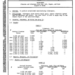 TOLERANCES Aluminum and Aluminum Alloy Bar, Rod, Shapes, and Wire Rolled or Drawn