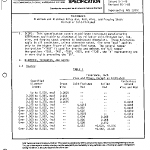 TOLERANCES Aluminum and Aluminum Alloy Bar, Rod, Wire, and Forging Stock Rolled or Cold-Finished