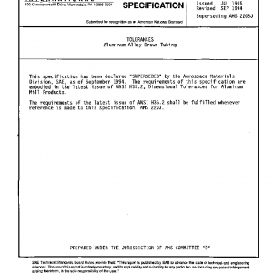 This specification has been declared “SUPERSEDED” by the Aerospace Materials Division, SAE, as of September 1994. The requirements of this specification are embodied in the latest issue of ANSI H35.2, Dimensional Tolerances for Aluminum Mill Products.
