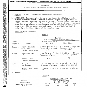 TOLERANCES Aluminum Rolled or Extruded Standard Structural Shapes