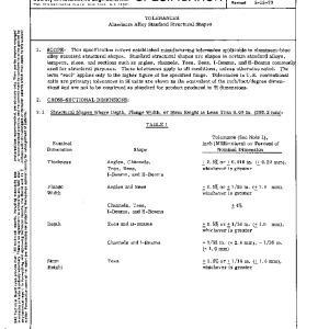 This specification covers established manufacturing tolerances applicable to aluminum-base alloy standard structural shapes. Standard structural shapes are shapes in certain standard alloys, tempers, sizes, and sections such as angles, channels, Tees, Zees, I-Beams, and H-Beams commonly used for structural purposes. These tolerances apply to all conditions, unless otherwise noted. The term “excl” applies only to the higher figure of the specified range. Tolerances in U.S. conventional units are primary; tolerances in SI units are shown as the equivalent of the inch/foot/degree dimensions and are not to be construed as standard for product produced to SI dimensions.