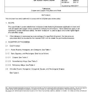 This specification covers established inch/pound manufacturing tolerances applicable to bars and rods of copper and copper alloys ordered to inch/pound dimensions. These tolerances apply to all conditions, unless otherwise noted. The term “exclusive” is used to apply only to the higher figure of a specified range.