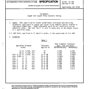 This specification covers established inch/pound manufacturing tolerances applicable to copper and copper alloy seamless tubing ordered to inch/pound dimensions. These tolerances apply to all conditions, unless otherwise noted. The term “excl” is used to apply only to the higher figure of a specified range.