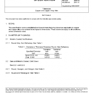 This specification covers established inch/pound manufacturing tolerances applicable to copper and copper alloy wire ordered to inch/pound dimensions. These tolerances apply to all conditions, unless otherwise noted.