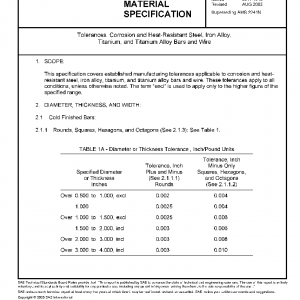 Tolerances, Corrosion and Heat-Resistant Steel, Iron Alloy, Titanium, and Titanium Alloy Bars and Wire