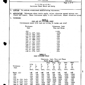 TOLERANCES Stainless Steel Sheet and Strip
