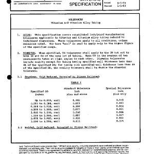 This specification covers established inch/pound manufacturing tolerances applicable to titanium and titanium alloy tubing ordered to inch/pound dimensions. These tolerances apply to all conditions, unless otherwise noted. The term “excl” is used to apply only to the higher figure of the specified range.