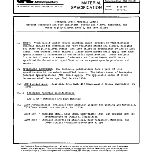 This specification covers chemical check (product or verification) analysis limits for corrosion and heat resistant steels and alloys, maraging and other highly-alloyed steels, and iron alloys as established by AMS or AISI usage. The chemical check analysis limits shown herein shall apply when this specification is referenced in the material specification. Check analysis limits for elements or ranges of elements not listed herein shall be as specified in the material specification or as agreed upon by purchaser and vendor.