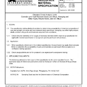 This specification defines limits of variation for determining acceptability of chemical composition of cast and wrought corrosion and heat resistant steels and alloys, maraging and other highly alloyed steels, and iron alloy parts and materials acquired from a producer.