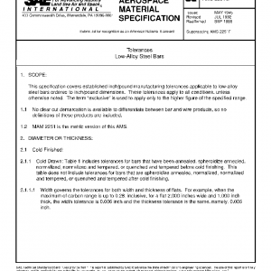This specification covers established inch/pound manufacturing tolerances applicable to low-alloy steel bars ordered to inch/pound dimensions. These tolerances apply to all conditions, unless otherwise noted. The term “exclusive” is used to apply only to the higher figure of the specified range.