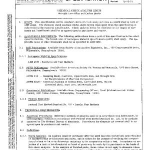 This specification covers standard chemical check analysis limits as established by AMS or AISI usage. The chemical check analysis limits shown herein shall apply when this specification is referenced in the material specification. Check analysis limits for elements or for ranges of elements not listed herein shall be as agreed upon by purchaser and vendor.