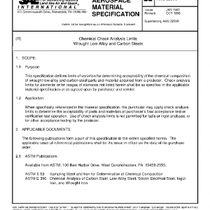 This specification defines limits of variation for determining acceptability of the chemical composition of wrought low-alloy and carbon steel parts and material acquired from a producer. Check analysis limits for elements or for ranges of elements not listed herein shall be as specified in the applicable material specification or as agreed upon by purchaser and vendor.