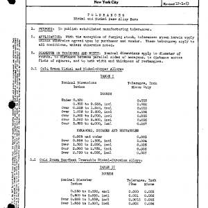TOLERANCES Nickel and Nickel Base Alloy Bars
