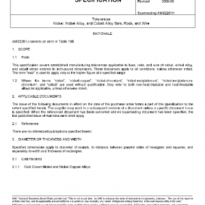 Tolerances Nickel, Nickel Alloy, and Cobalt Alloy Bars, Rods, and Wire
