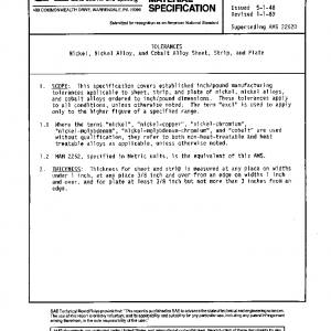 TOLERANCES Nickel, Nickel Alloy, and Cobalt Alloy Sheet, Strip, and Plate