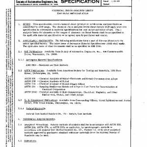 This specification covers chemical check (product or verification) analysis limits as established by AMS usage. The chemical check analysis limits shown herein shall apply when this specification is referenced in material specifications for cast nickel and nickel alloys. Check analysis limits for elements or for ranges of elements not listed herein shall be as specified in the applicable material specification or as agreed upon by purchaser and vendor.
