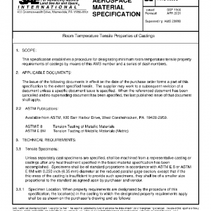 This specification establishes a procedure for designating minimum room temperature tensile property requirements of castings by means of this AMS number and a series of dash numbers.