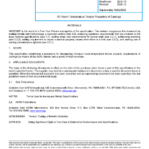 This specification establishes a procedure for designating minimum room temperature tensile property requirements of castings by means of this AMS number and a series of dash numbers.