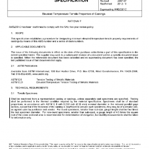 This specification establishes a procedure for designating minimum elevated temperature tensile property requirements of castings by means of this AMS number and a series of dash numbers.