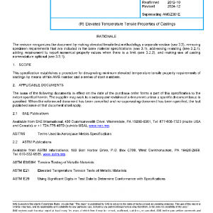 This specification establishes a procedure for designating minimum elevated temperature tensile property requirements of castings by means of this AMS number and a series of dash numbers.