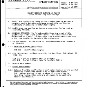 QUALITY ASSURANCE SAMPLING AND TESTING Carbon and Low-Alloy Steel Forgings