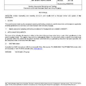 This specification covers quality assurance sampling and testing procedures used to determine conformance to applicable material specifications of corrosion and heat-resistant steel and alloy forgings.
