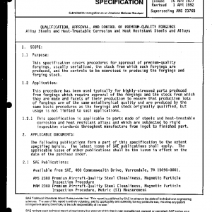 QUALIFICATION, APPROVAL, AND CONTROL OF PREMIUM-QUALITY FORGINGS Alloy Steels and Heat-Treatable Corrosion and Heat Resistant Steels and Alloys