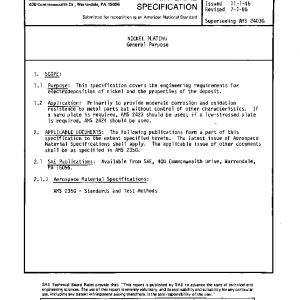 This specification covers the engineering requirements for electrodeposition of nickel and the properties of the deposit.