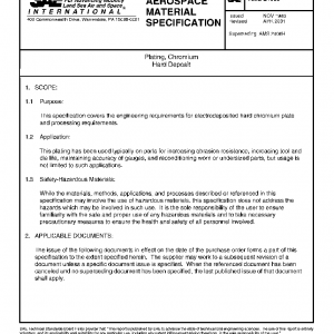 This specification covers the engineering requirements for electrodeposited hard chromium plate and processing requirements.