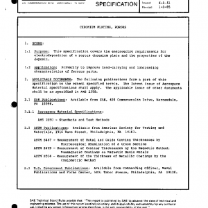 This specification covers the engineering requirements for electrodeposition of a porous chromium plate and the properties of the deposit.