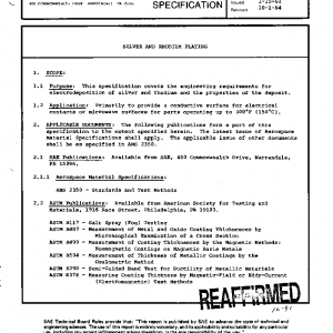 This specification covers the engineering requirements for electrodeposition of silver and rhodium and the properties of the deposit.