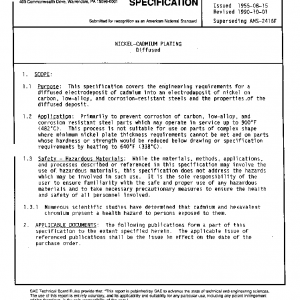 This specification covers the engineering requirements for a diffused electrodeposit of cadmium into an electrodeposit of nickel on carbon, low-alloy, and corrosion-resistant steels and the properties of the diffused deposit.