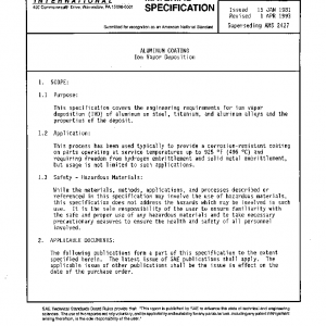 This specification covers the engineering requirements for ion vapor deposition (IVD) of aluminum on steel, titanium, and aluminum alloys and the properties of the deposit.