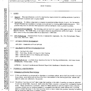 This specification covers the engineering requirements for peening surfaces of parts by impingement of metallic shot or glass beads.