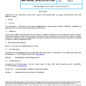 This specification, in conjunction with the general requirements for peening media covered in AMS2431, establishes the requirements for the procurement of yttria-zirconia ceramic shot.